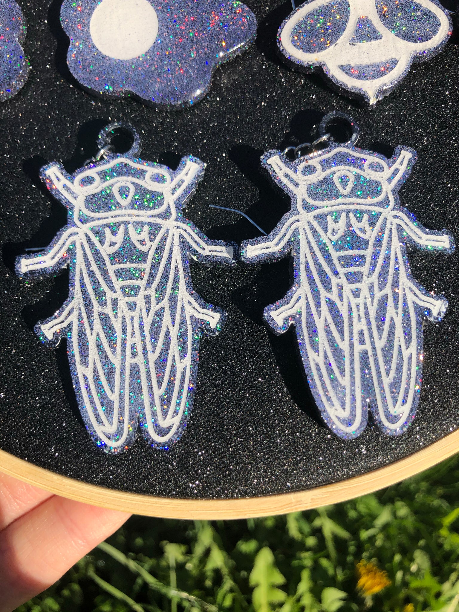The earrings are about 1 inch big, the cicadas are around 2 inches