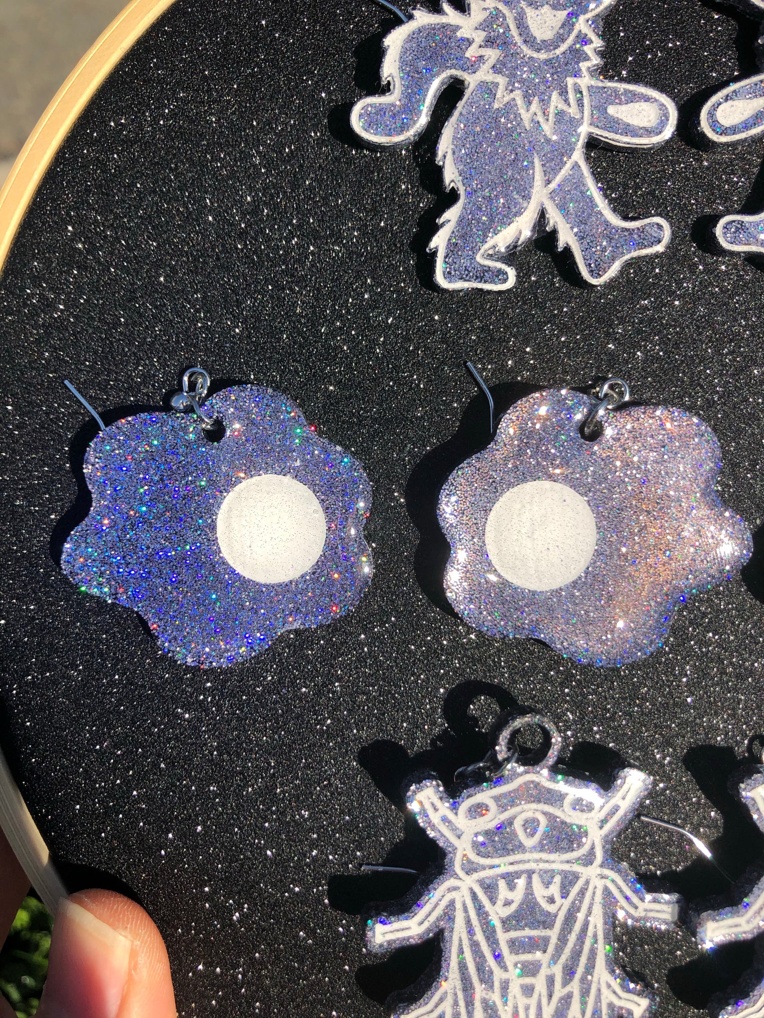 Holographic earrings with a slight purple tint, Will ship up to five days out!