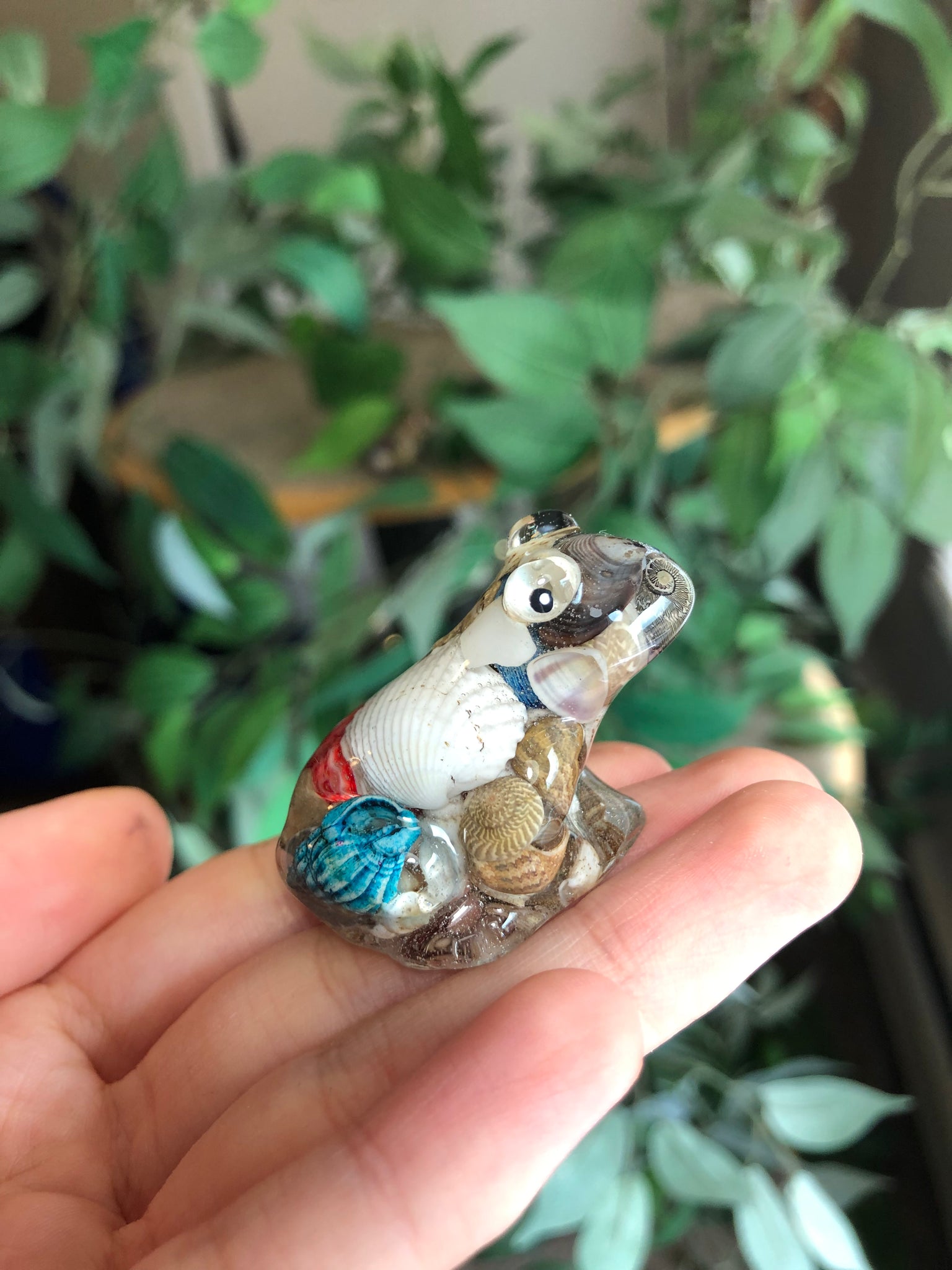Frog filled with real sea shells!! These will ship up to about 5 days out. Thank you for your patience:)