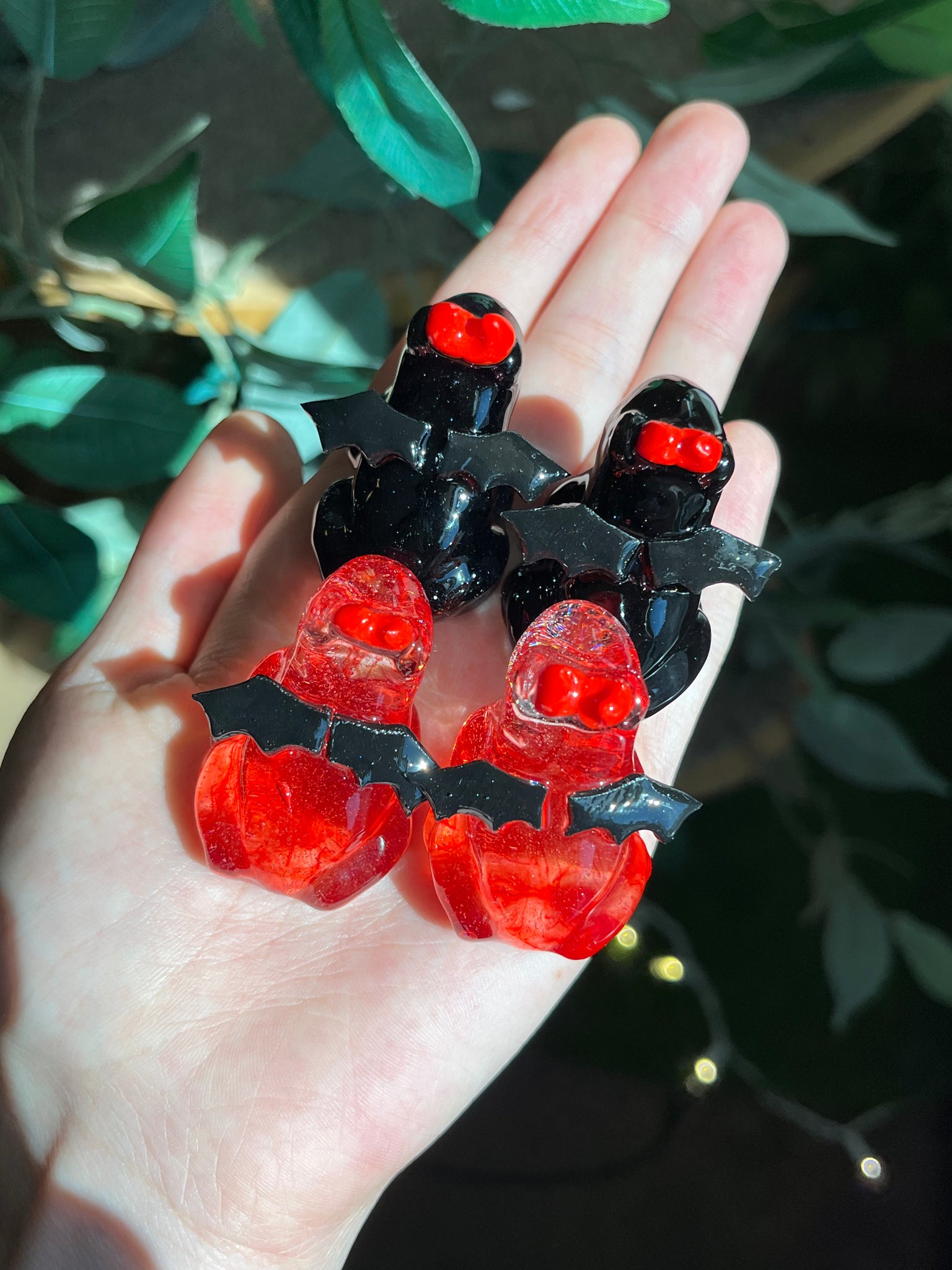 These are about 1x2in big. The dots on the black you can see in some pics, are shimmer that sparkles in the sun:) They honestly look even better in person! Its hard to get good photos of these guys